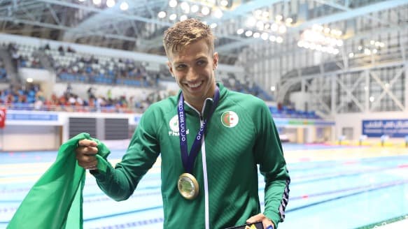 وسيخوض أسامة سحنون نهائي سباق 50 متر سباحة حرة، بعد أن تصدر مجموعته بالتصفيات، بتوقيت 22.13 ثانية.