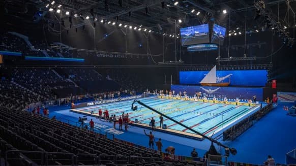 ونوه "فينا"، إلى أنه باستخدام أحدث التقنيات، تم تحويل المجمع إلى منشأة سباحة عالمية المستوى لبطولة العالم للسباحة، من خلال تركيب مسبح رئيسي ومسبح آخر للإحماء.