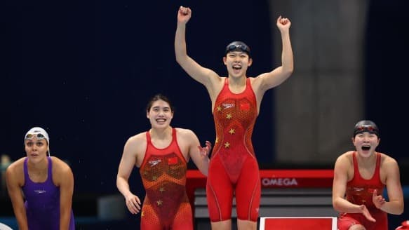 فازت الصين بذهبية سباق التتابع أربعة في 200 متر حرة للسيدات في السباحة في زمن قياسي يبلغ سبع دقائق و40.33 ثانية بأولمبياد طوكيو اليوم الخميس.